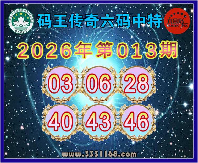 013期:【码王传奇】 🪢六码中特🪢【03.06.28.40.43.46】开:01